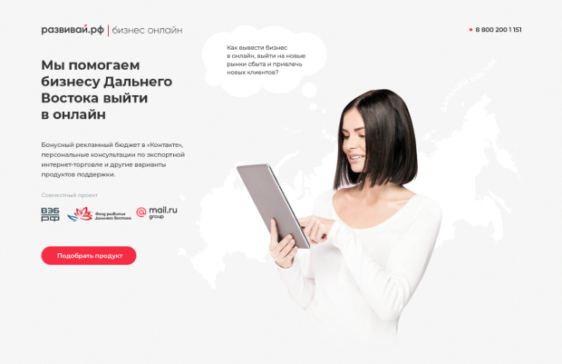 В рамках проекта по развитию Дальнего Востока была поставлена задача разработать сайт для местных предпринимателей. Для работы был предоставлен бриф, макеты и куратор проекта.
